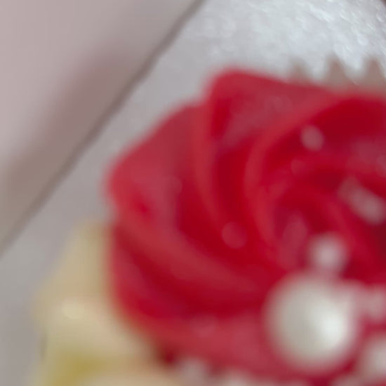 These beautifully crafted cupcakes come in sets of 6 or 12, each hand-piped with intricate buttercream designs and adorned with edible pearls and a touch of glitter for a sparkling, romantic finish.